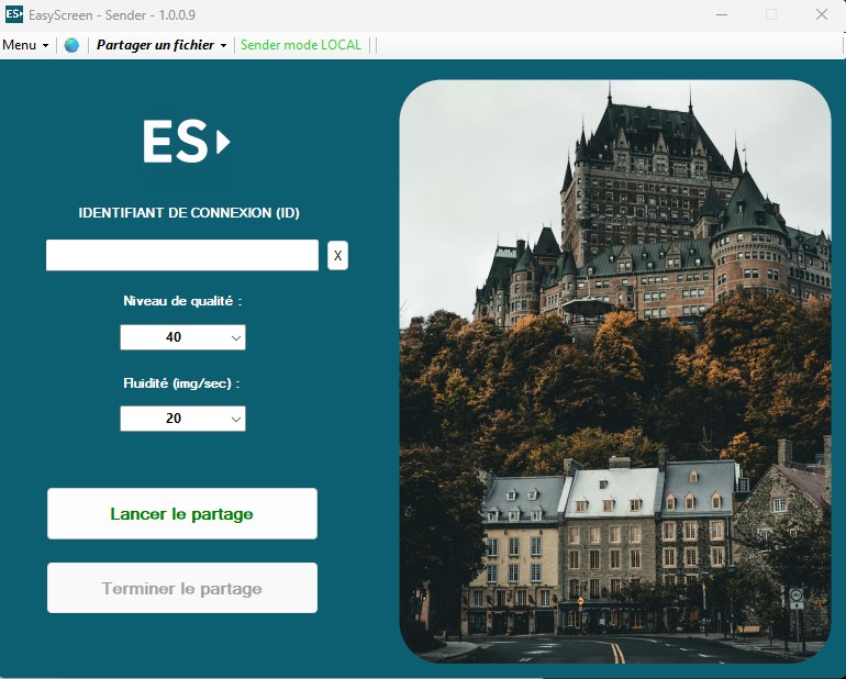 Votre interlocuteur démarre son Sender (vue de son poste à lui) :